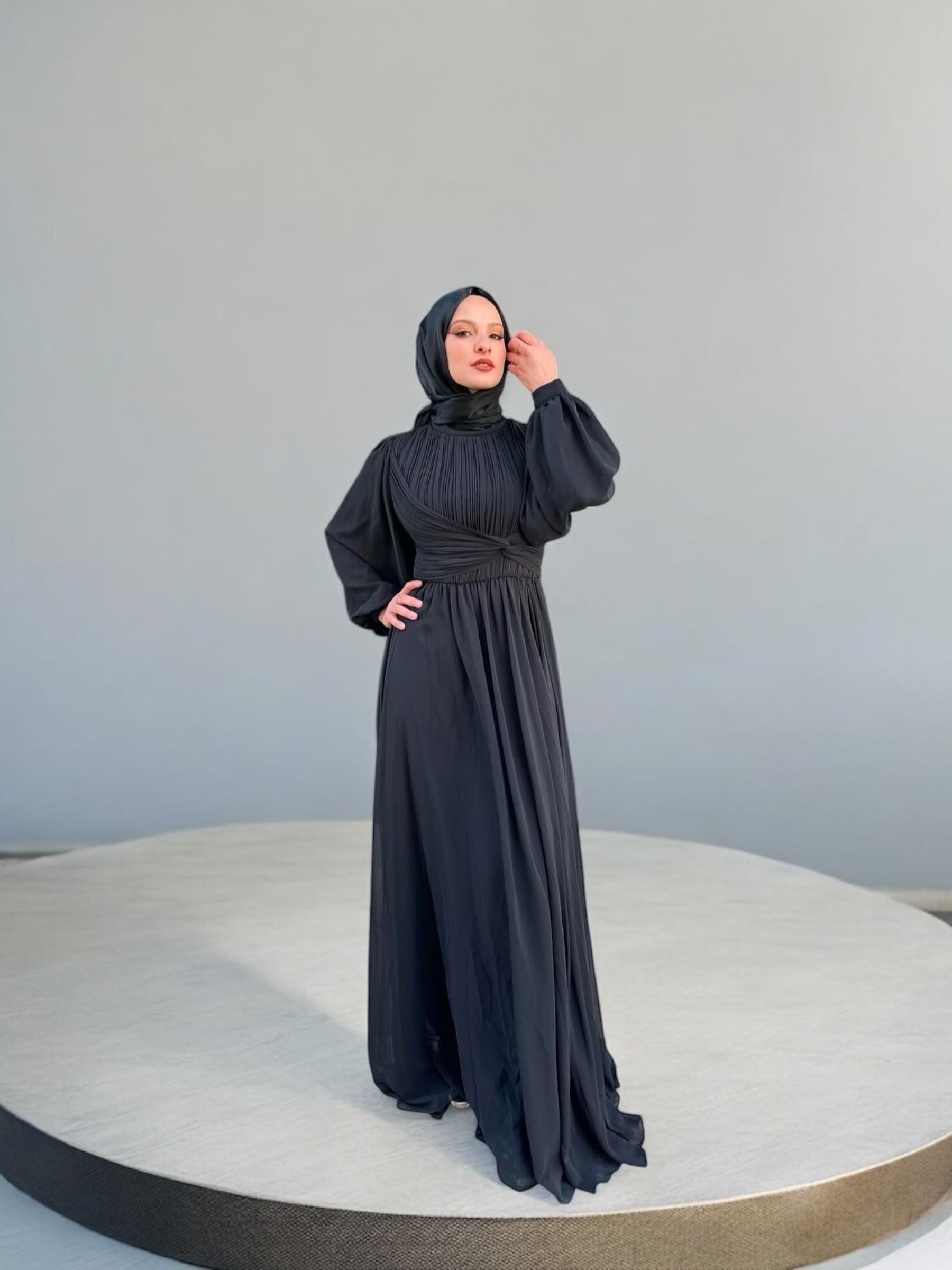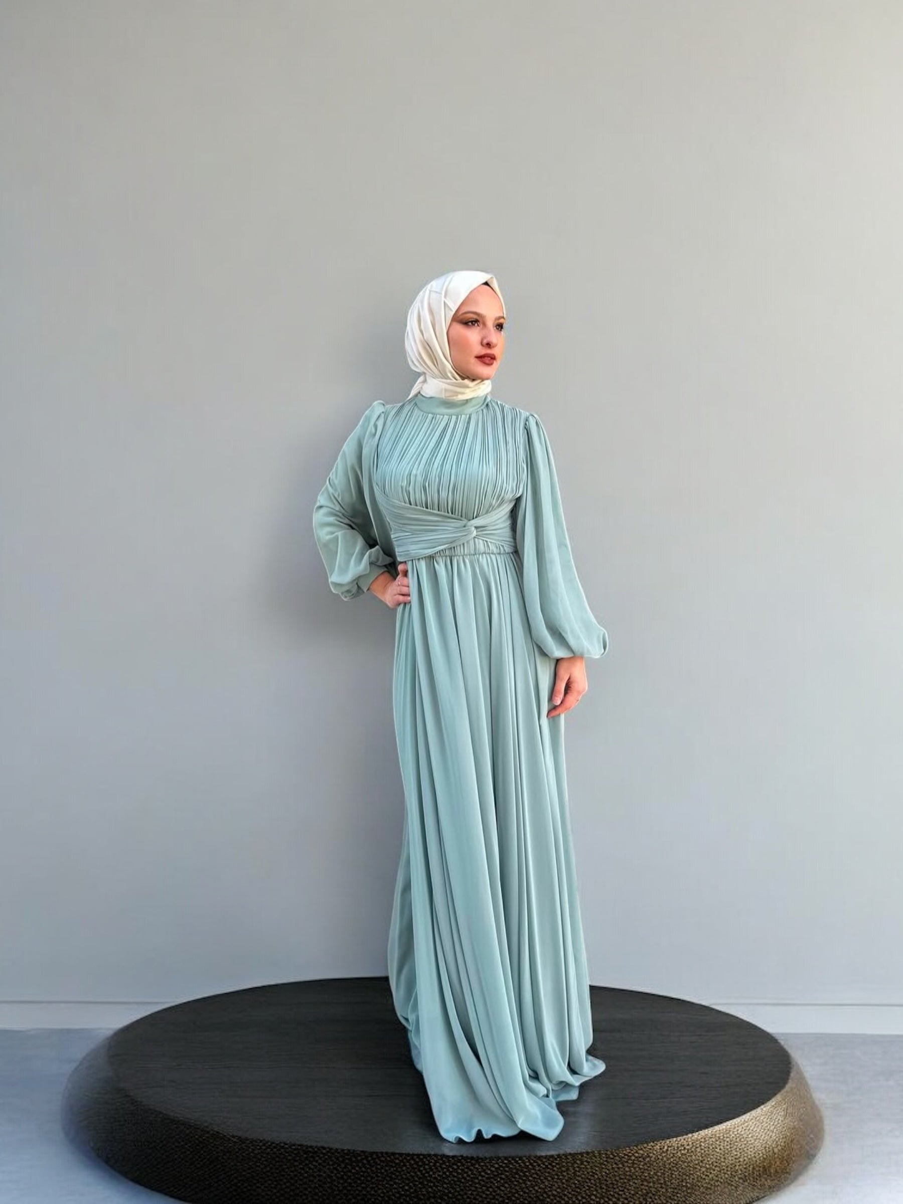 KUMAŞ TÜRÜ :Şifon Kumaş ÜRÜN BOYU : 1.60 Arkadan fermuarlıdır Astarlıdır Göğüs pedi mevcuttur Çapraz bağlama bel detayı